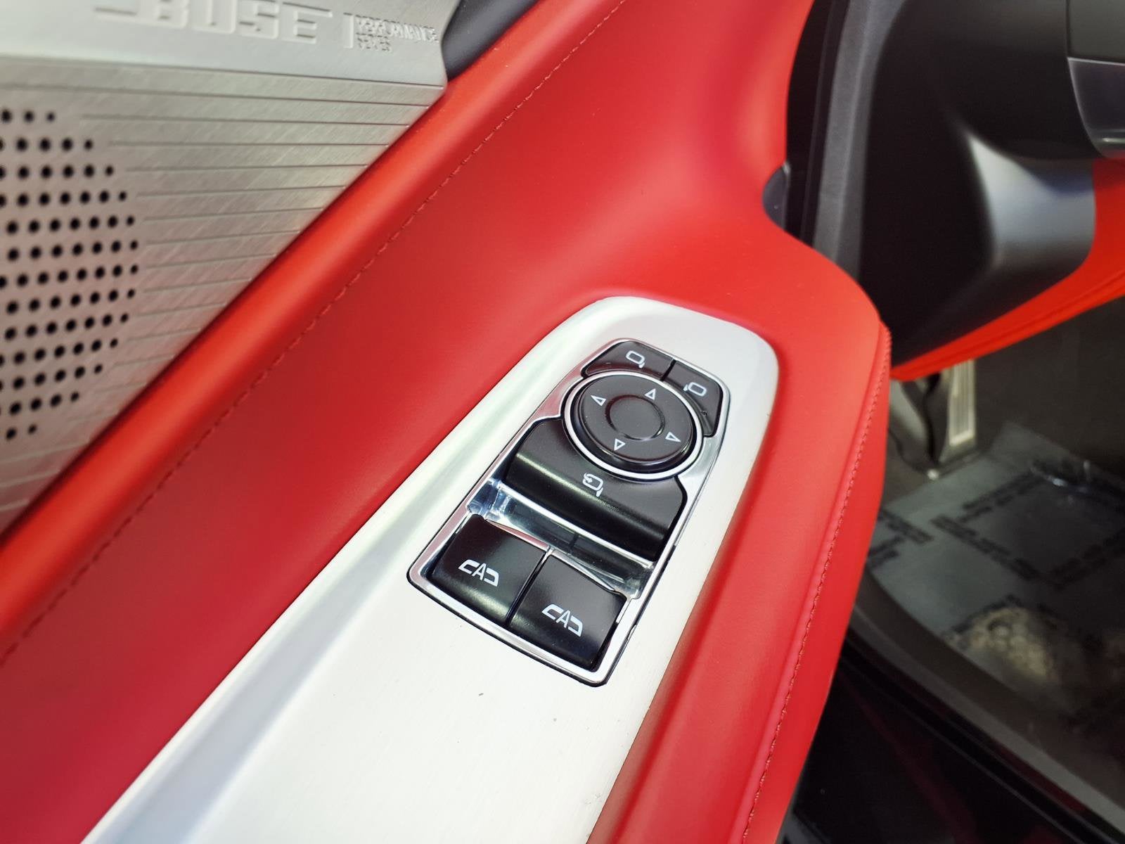 - Adrenaline Red, Napa leather seating surfaces with perforated sueded microfiber inserts